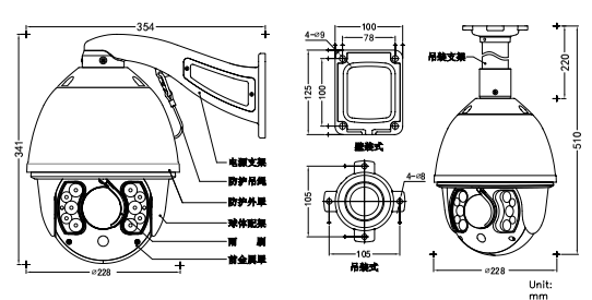 垂直键控速度:0.01°~120°/s ,速度可设;垂直预置点速度:350°/s |